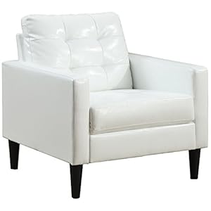 Roundhill Furniture Blended Leather Tufted Accent Chair with Oversized Seating, Ivory