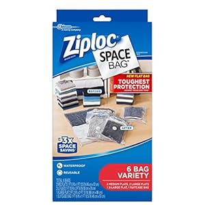 Ziploc Space Bag, Variety Pack, 6 Count (Flat Bag: 2 Medium, 2 Large,1 XL; 1 Suitcase Bag)
