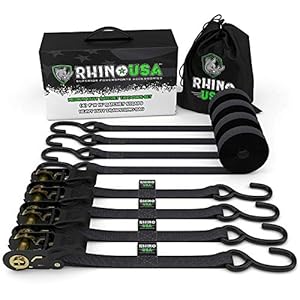RHINO USA Ratchet Tie Down Straps (4PK) – 1,823lb Guaranteed Max Break Strength, Includes (4) Premium 1″ x 15′ Rachet Tie Downs with Padded Handles. Best for Moving, Securing Cargo (GREEN) 69736d8b6fa31