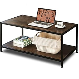 GreenForest Coffee Table Industrial Metal Frame for Living Room Easy to Install,Rustic Walnut