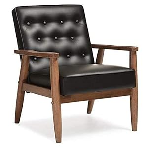 Baxton Studio Sorrento Mid-Century Retro Modern Faux Leather Upholstered Wooden Lounge Chair, Black 69730cc0283e8