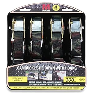 Mann Cambuckle Tie Down Straps with S-hooks 4-Pack Set 1 Inch x 10 Feet 300 Pound Load Capacity 900 Pound Break Strength (Camo) 697302fba43b6
