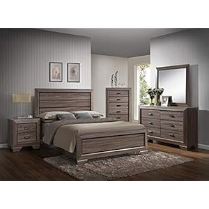 GTU Furniture Lyndon 4Pc Weathered Grey Panel Bedroom Set (Queen Bed, Nightstand, Dresser and Mirror)