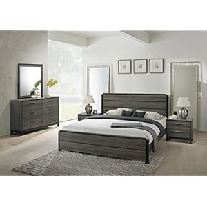 Roundhill Furniture B170QDMN Stout Panel Queen Size Bedroom Set with Bed, Dresser, Mirror, Night Stand, Grey 6973f9fee146d