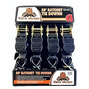 Tiger Tie Down Straps-4PK-Extra Long 20ft -500lb Load Cap, The Ultimate Ratchet Tiedowns, These Tie Down Straps Have A 1500lb Break Strength. Premium Heavy Duty Locking Straps Tiedowns