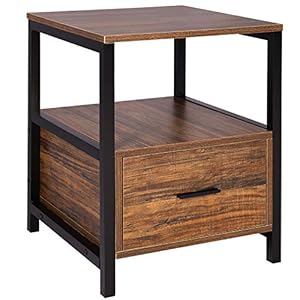 VECELO Modern Rectangular Wood Nightstand Side/End/Coffee/Accent Table, Cabinet with Drawer for Storage, Brown 6973855129e90