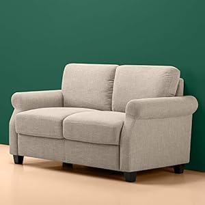Zinus Josh Traditional Upholstered 56in Sofa Couch/Loveseat, Beige Weave