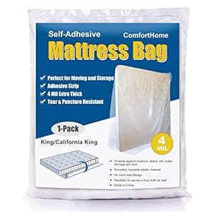 ComfortHome 4 Mil Extra Thick Sealable Mattress Bag with Adhesive Strip for Moving and Storage, Fits King and Cal King Size, 1 Pack 694734c7dfd14