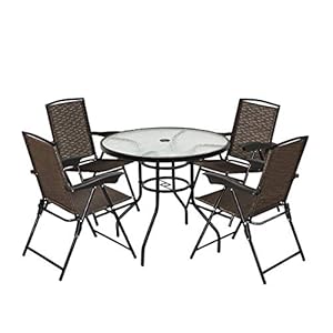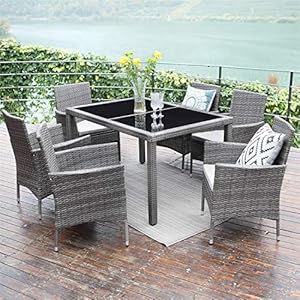 Wisteria Lane 5 Piece Outdoor Patio Dining Set, Wicker Glassed Table and Cushioned Chair, Umbrella Cut Out,Grey