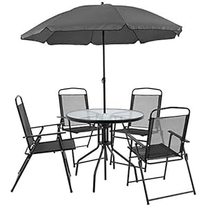 Flash Furniture Nantucket 6 Piece Black Patio Garden Set with Table, Umbrella and 4 Folding Chairs, GM-202012-BK-GG 692caeaabd1e4