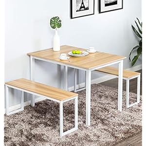 Homury 3 Piece Dining Table Set Breakfast Nook Dining Table with Two Benches,White