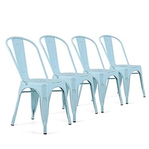 neotheroad Metal Dining Chairs Indoor Outdoor Stackable Coffee Chairs Chic Style Blue Set of 4