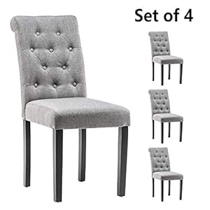 YEEFY Habit Solid Wood Tufted Parsons Upholstered Fabric Dining Chair (Set of 4) (Light Gray)