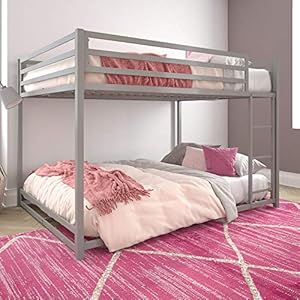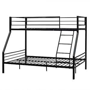 Bonnlo Bunk Bed Twin Over Full Sturdy Metal Bed Frame with Flat Ladder and Guardrail for Adults/Children/Teens, Black