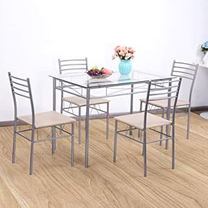 JAXSUNNY Kitchen Dining Table Set Multipurpose Table 5-Piece Dining and Chair Set Glass Top Beige