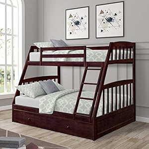 Merax Solid Wood Twin Over Full Bunk Bed with Two Storage Drawers and Removable Ladder, Espresso 69736f2c882cb