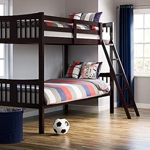Storkcraft Caribou Solid Hardwood Twin Bunk Bed, Espresso Twin Bunk Beds for Kids with Ladder and Safety Rail