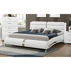 Coaster Home Furnishings Jeremaine Queen Upholstered Bed with Metallic Accents, White