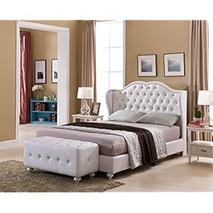 Kings Brand Furniture – White Tufted Design Faux Leather Full Size Upholstered Platform Bed