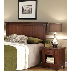 Home Styles Aspen Rustic Cherry Queen Headboard and Nightstand with Raised Panels, Picture Frame Moldings, One Drawer, and an Open Space Storage