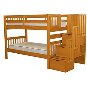 Bedz King Stairway Bunk Beds Twin over Twin with 3 Drawers in the Steps, Honey 69738325352bf