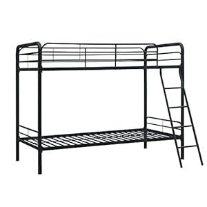 DHP Twin-Over-Twin Bunk Bed with Metal Frame and Ladder, Space-Saving Design, Black