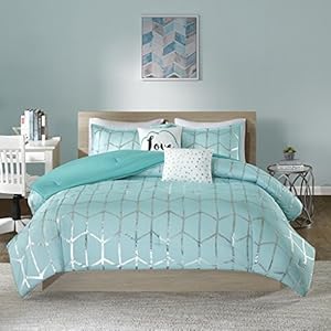 Intelligent Design Raina Comforter Set Full/Queen Size – Aqua Silver, Geometric – 5 Piece Bed Sets – Ultra Soft Microfiber Teen Bedding for Girls Bedroom