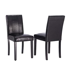 Dining Chairs Set of 2 Solid Wood Leatherette Parson Chairs(Black)