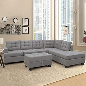 Romatpretty Modern Soft Combination Sofa, L-Shaped Sectional Interior,Fabric Linen, 5 Seat,Sofa with Footrest, Easy to Assemble, Living Room/Apartment/Small Space