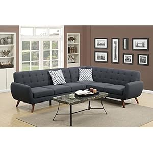 Poundex Bobkona Galiana Linen-Like Polyfabric SECTIONAL in Ash Black