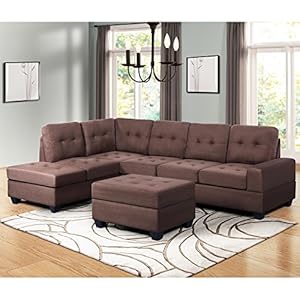 Harper & Bright Designs Sectional Sofa 3 Piece Sofa Sets Couches with Reversible Chaise Lounge Storage Ottoman and Cup Holders for Living Room (Brown)