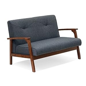 FURINNO Mid Century Vintage Compact Loveseat, Dark Grey