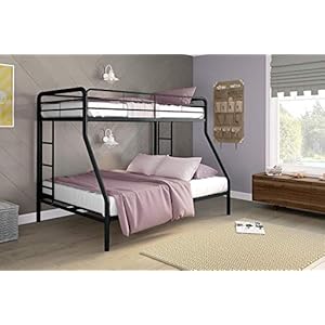 DHP Twin-Over-Full Bunk Bed with Metal Frame and Ladder, Space-Saving Design, Black