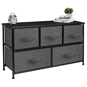 Sorbus Dresser with Drawers – Furniture Storage Chest Tower Unit for Bedroom, Hallway, Closet, Office Organization – Steel Frame, Wood Top, Easy Pull Fabric Bins (5 Drawer, Long, Black/Charcoal)