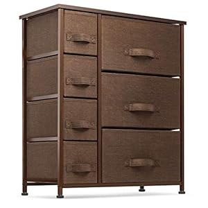 7 Drawers Dresser – Furniture Storage Tower Unit for Bedroom, Hallway, Closet, Office Organization – Steel Frame, Wood Top, Easy Pull Fabric Bins Brown/Brown
