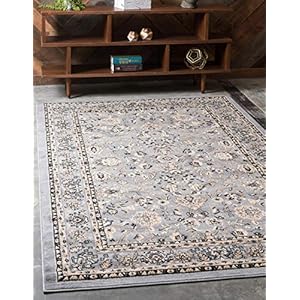 Unique Loom Kashan Collection Traditional Floral Overall Pattern with Border Gray Area Rug (4′ 0 x 6′ 0)