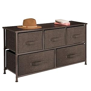 mDesign Extra Wide Dresser Storage Tower – Sturdy Steel Frame, Wood Top, Easy Pull Fabric Bins – Organizer Unit for Bedroom, Hallway, Entryway, Closets – Textured Print – 5 Drawers – Espresso Brown
