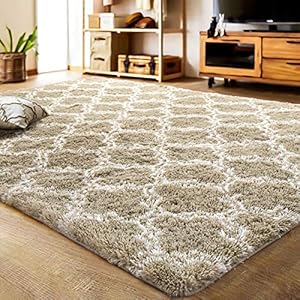 LOCHAS Luxury Velvet Shag Area Rug Mordern Indoor Plush Fluffy Rugs, Extra Soft and Comfy Carpet, Geometric Moroccan Rugs for Bedroom Living Room Girls Kids (5×8 Feet, Beige/White, HS3)