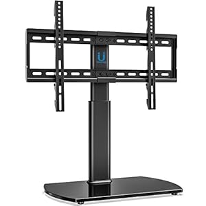 FITUEYES Universal TV Stand Base Swivel Tabletop TV Stand with Mount for 32 to 65 inch Flat Screen TV 80 Degree Swivel, 3 Level Height Adjustable,Tempered Glass Base,Holds up to110 lbs Screens