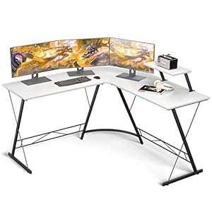 L Shaped Desk Home Office Desk with Round Corner Computer Desk with Large Monitor Stand Desk Workstation,White