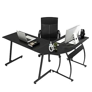 GreenForest L-Shaped Corner Desk Computer Gaming Desk PC Table,Home Office Writing Workstation 3-Piece,Black