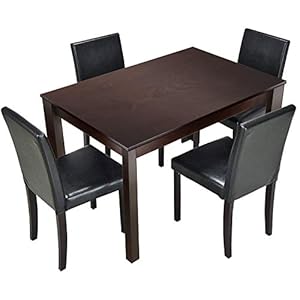 Best Choice Products 5 Piece Kitchen Dining Table Set W/Glass Top and 4 Leather Chairs Dinette- Black