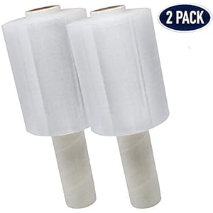 2 Pack Industrial Strength Mini Hand Stretch Wrap 5″ – 1000 Roll | 80 Gauge Thick Clear Cling Plastic Moving Supplies | Durable Self – Adhering ● Packing ● Pallet ● Furniture ● Heavy Duty Shrink Film