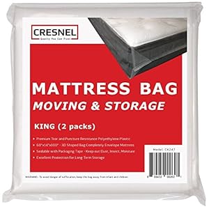 CRESNEL Mattress Bag for Moving & Long-Term Storage – King Size – Enhanced Mattress Protection with 5 mil Super Thick Tear & Puncture Resistance Polyethylene (Value Pack of 2pcs)