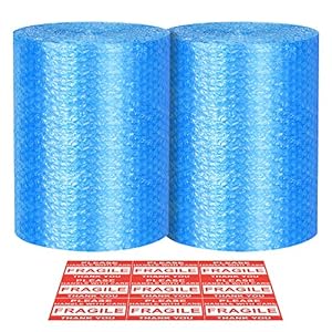 Bubble Cushioning Wrap Roll for Packing (3/16″, 12″ x 30 ft), Easy-to-Tear 12″ Sheets, Plus Free 8 ‘Fragiile, Handle with Care’ Stickers