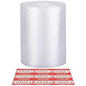 enKo (2 Pack) 12 inch x 72 feet Bubble Cushioning Wrap Roll Perforated 20 Fragile Sticker Labels for Moving Shipping Packing Boxes Supplies