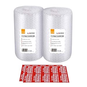 2-Pack Bubble Cushioning Wrap Rolls, 3/16″ Air Bubble, 12 Inch x 72 Feet Total, Perforated Every 12″, 20 Fragile Stickers Included