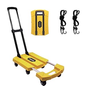 Folding Hand Truck 6 Wheel-roate 200Kg/440lbs Heavy Duty Solid Construction Utility Dolly Trolley Cart Compact and Lightweight for Luggage/Personal/Travel/Auto/Moving and Office Use (Yellow) 694752cf447b6
