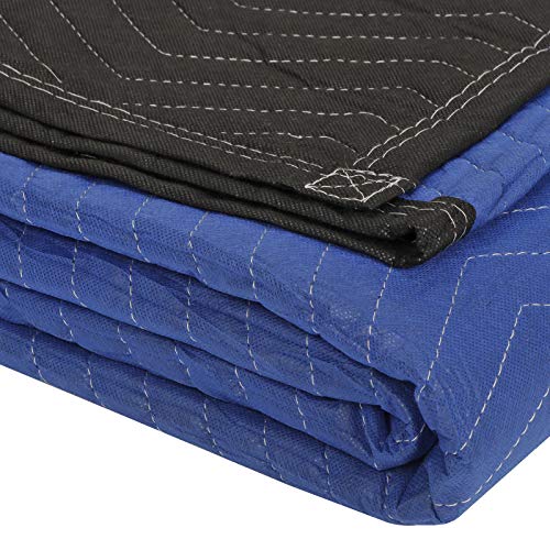 24 Moving Blankets – Deluxe Pro – 80 x 72 Inches (35 lb/dz) for Protecting Furniture Professional Quilted Shipping Furniture Pads Navy Bule and Black