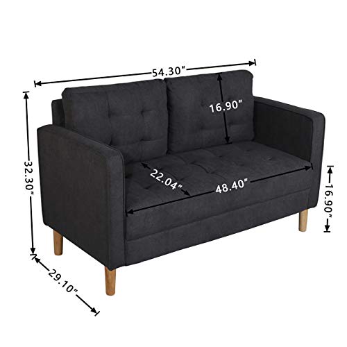 AODAILIHB Modern Soft Cloth Tufted Cushion Loveseat Sofa Small Space Configurable Couch 54.3″ (Dark Grey)